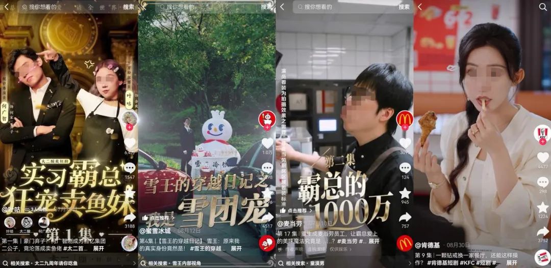 8月29日,肯德基也推出了首部短剧《重生之吃货皇后惹不起》,集合了霸总、穿越、商战等多重元素,短剧爆款女主赵佳主演,目前抖音播放量超14亿,是所有餐饮品牌中播放量最高。