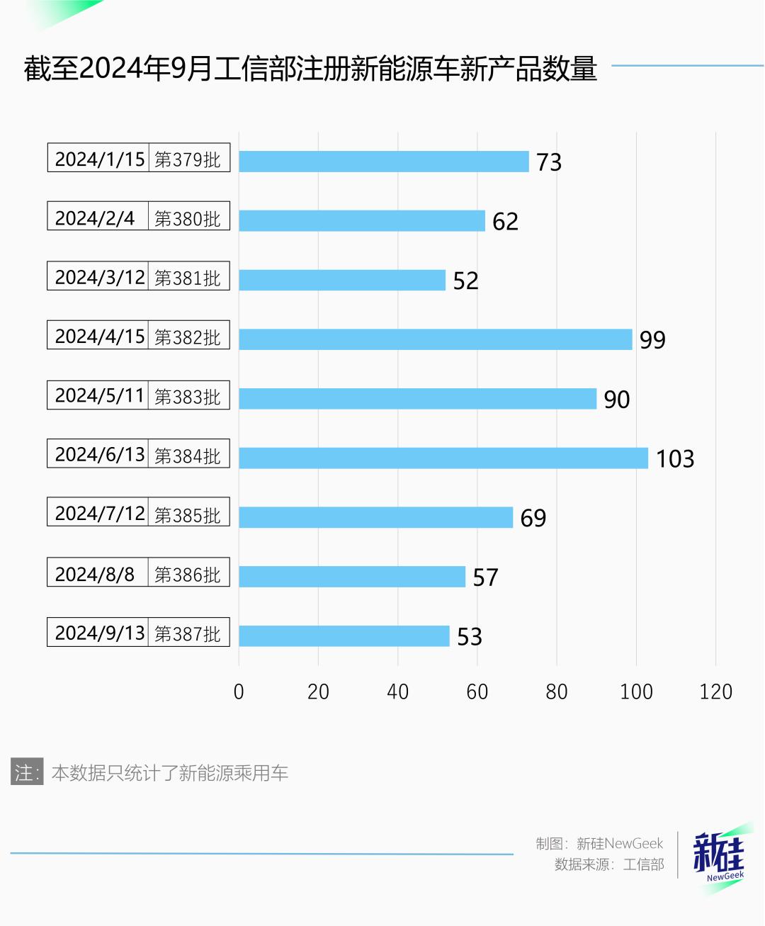 伴随着款式的多样化,原来汽车3年一改款、5年一换代的规则也被打破了,根据工信部发布的数据,2024年前三个季度,国内新注册新能源车型一共上新了——