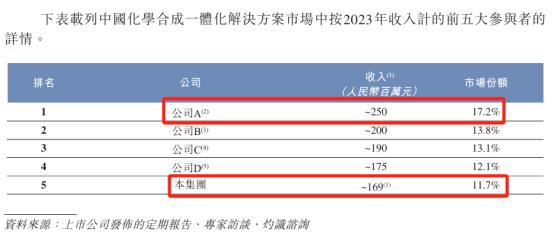 凌凯科技在申报稿中表示,“公司是中国化学合成行业的积极参与者,致力于提供小分子化合物技术和产品解决方案,专注于制药、新材料和新能源行业。特别是,公司是中国少有的从事化学合成一体化解决方案的领导者之一,根据灼识咨询的资料,2023年收入在中国排名第五,市场份额为11.7%。化学合成一体化解决方案是指包含工程和工艺技术及设备的一揽子解决方案,有助于精细化学品的实施和生产。”