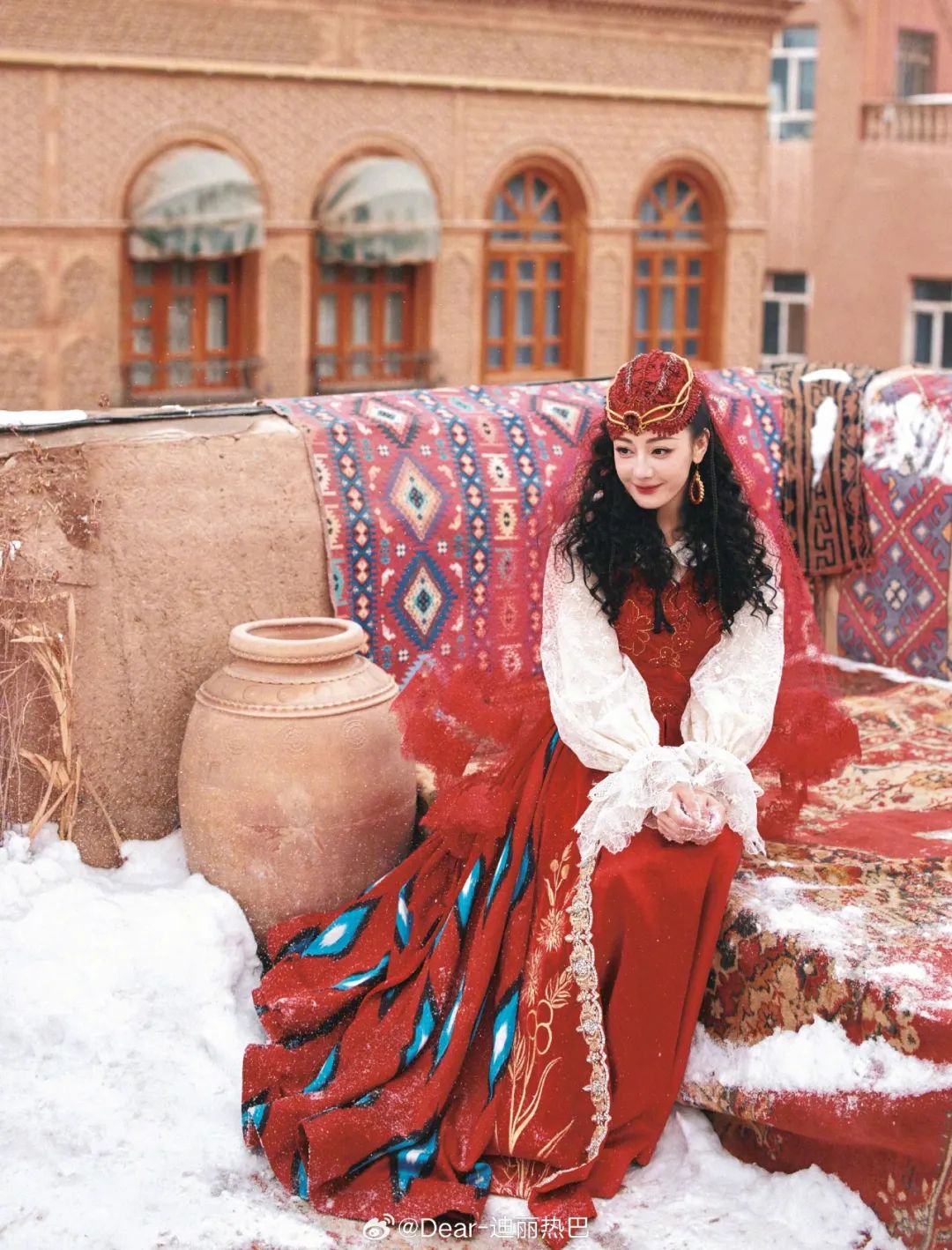 红红的配色如一朵鲜艳的石榴花/图源:迪丽热巴