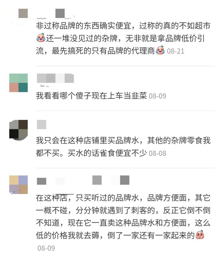 但是,有不少消费者也提出质疑,在小红书等社交平台上,很多人都曾分享过遭遇零食“刺客”的经历。有消费者坦言,“我只会在这种店铺里买品牌水,其他的杂牌零食我都不买”;也有消费者表示,“非过称品牌的东西确实便宜,过称的真的不如超市,还一堆没见过的杂牌”。