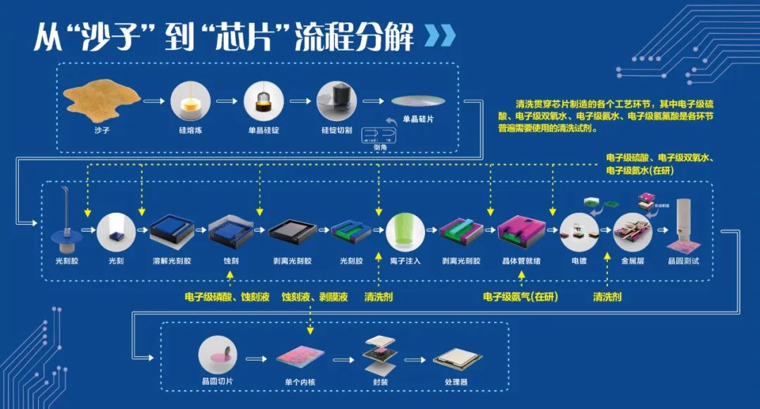 通用湿电子化学品在半导体生产中的作用(来自兴福电子官网)