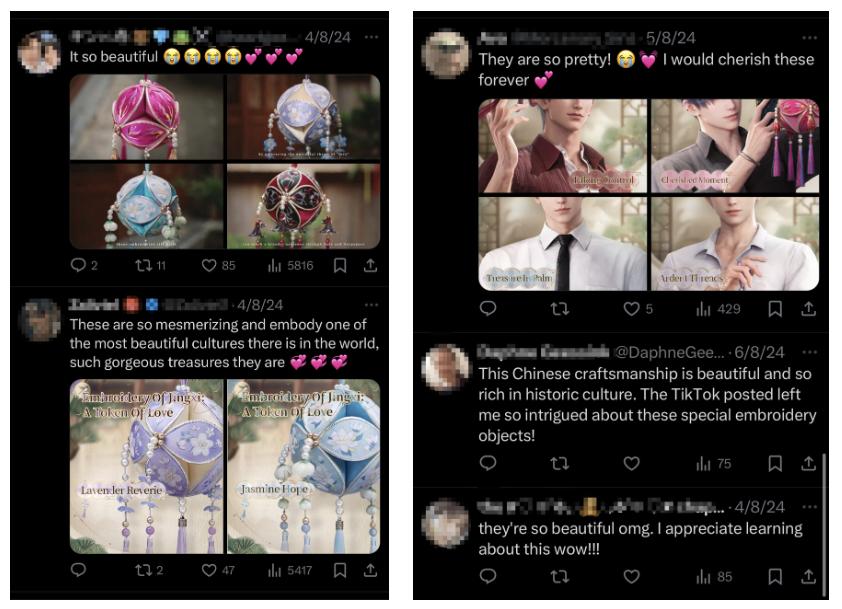 上月初,游戏邀请到京西绣花工艺代表传承人,为四位男主打造专属绣花丝球。此次的设计将靖西绣球由传统的红黄蓝基础色,转变为紫调勾线,黄黑搭配,黄白搭配等多种复杂的颜色组合,向海外玩家展示现代审美与传统文化碰撞迸发的魅力,并大受好评。