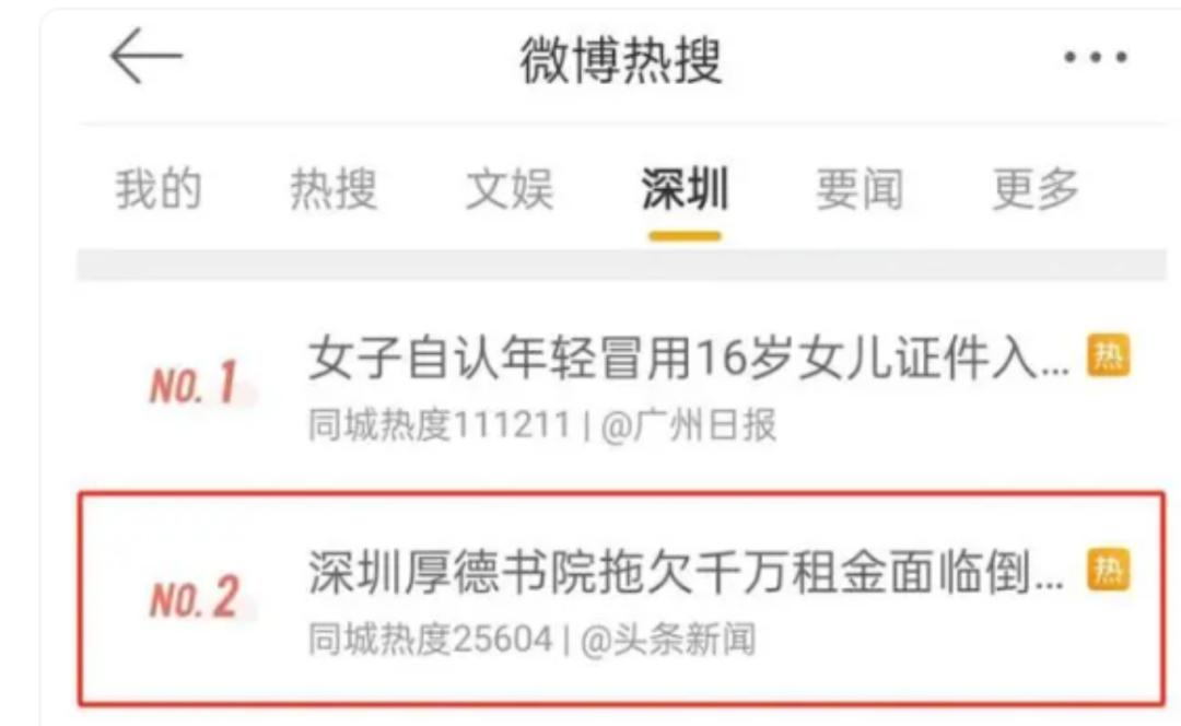 深圳厚德书院拖欠租金1000多万,800名学生无处可去;
