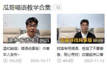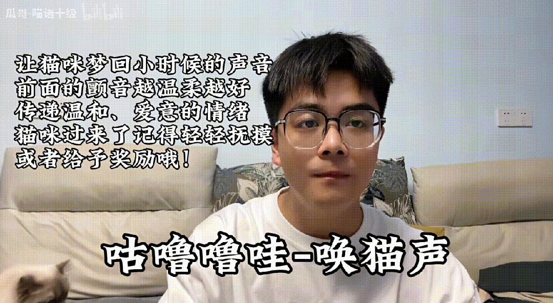 想要成为和他一样的十级猫语学家,并非需要骨骼清奇才能修炼,为了打破物种之间的语言障碍,瓜哥录制了《温和唤猫!喵语纯享版!作者本人发布~》猫语教学视频,有近6万铲屎官收藏。