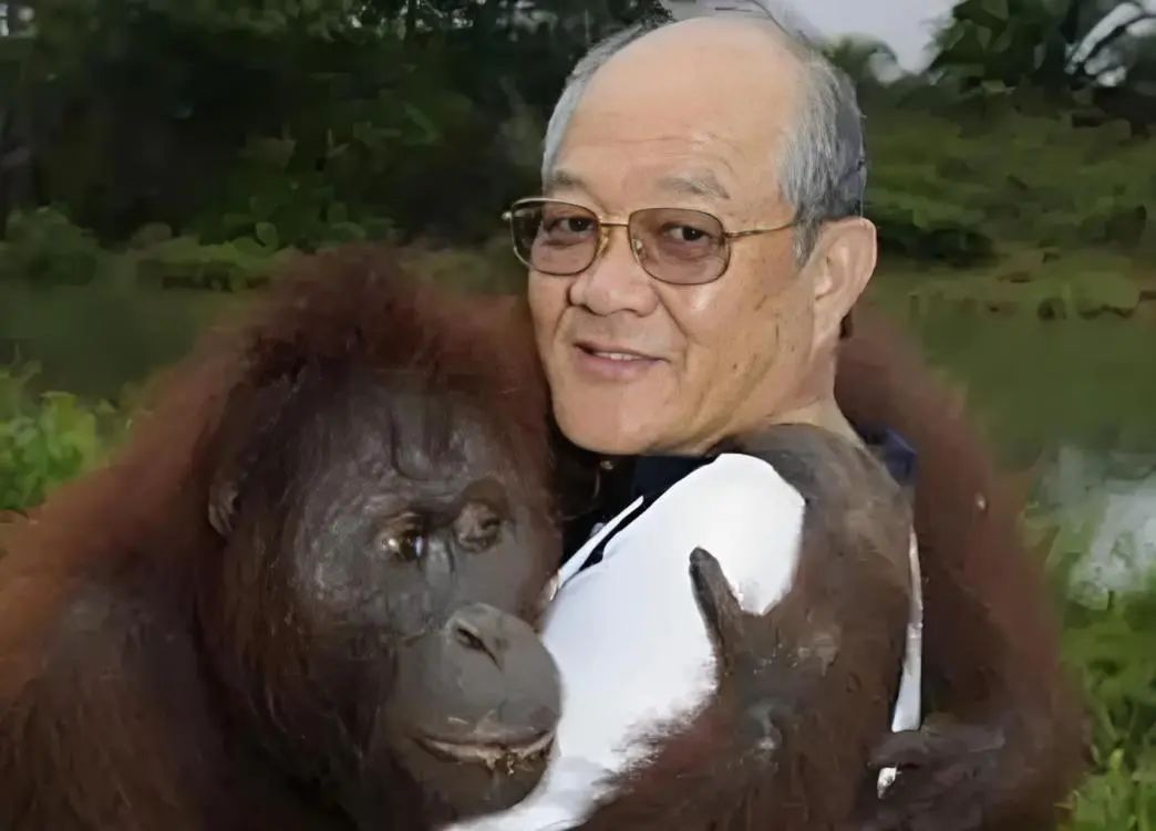 刘德光在无人岛上怀抱红猩猩