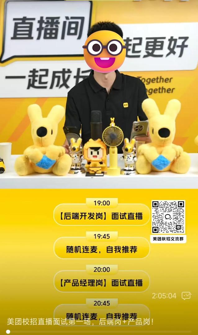 美团8月16日召开了第一场校招直播,不过没有线下群面那么抓马,更不用担心抢镜头的问题,给人观感更像是:把HR与面试者一对一线上会议的权限改为“对所有人开放”。