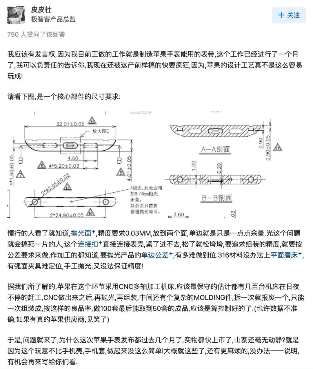 这种精度,作为用户可能比较难感知,但一些从业人士却有深刻的体会。当年极智客产品总监曾在知乎发文,说明了 X206 的加工难点。