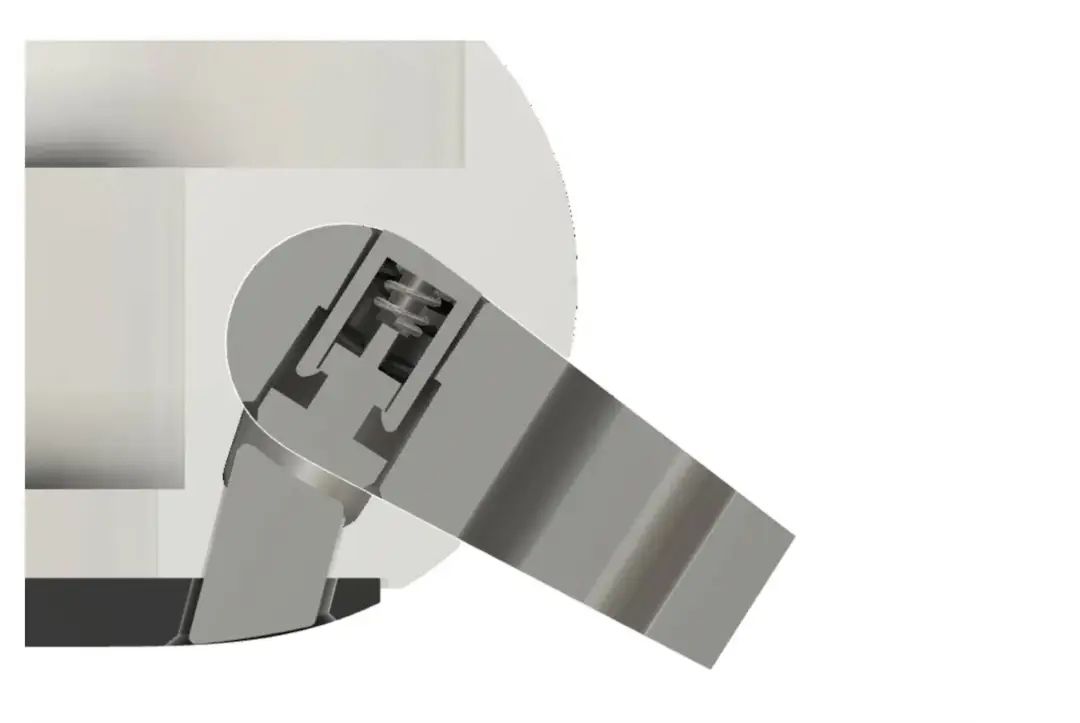当表带推入一半时,凸起的部分就会被表身向下挤压,四个弹簧发生形变,这时表身的凹槽和 X206 刚好能严丝合缝地对齐,所以挤压力就被存在了弹簧里。