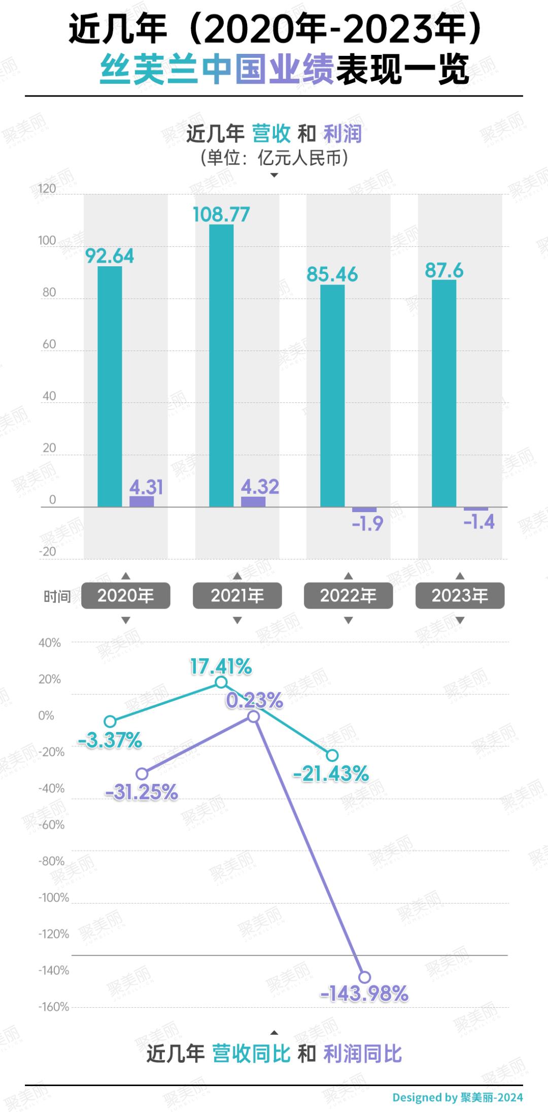 结合近几年丝芙兰中国业绩表现来看,除2021年营收呈双位数增长后,其从2022年开始出现严重下滑,甚至利润严重下滑至143.98%。且值得注意的是,与丝芙兰全球业绩表现相比,中国区的表现却并不符合高层期待。
