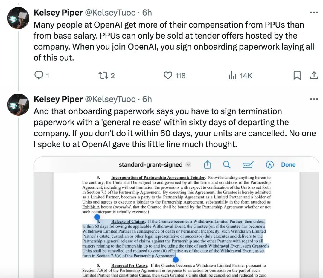 除了高层变动外,OpenAI对于普通员工的利益保护也受到质疑。