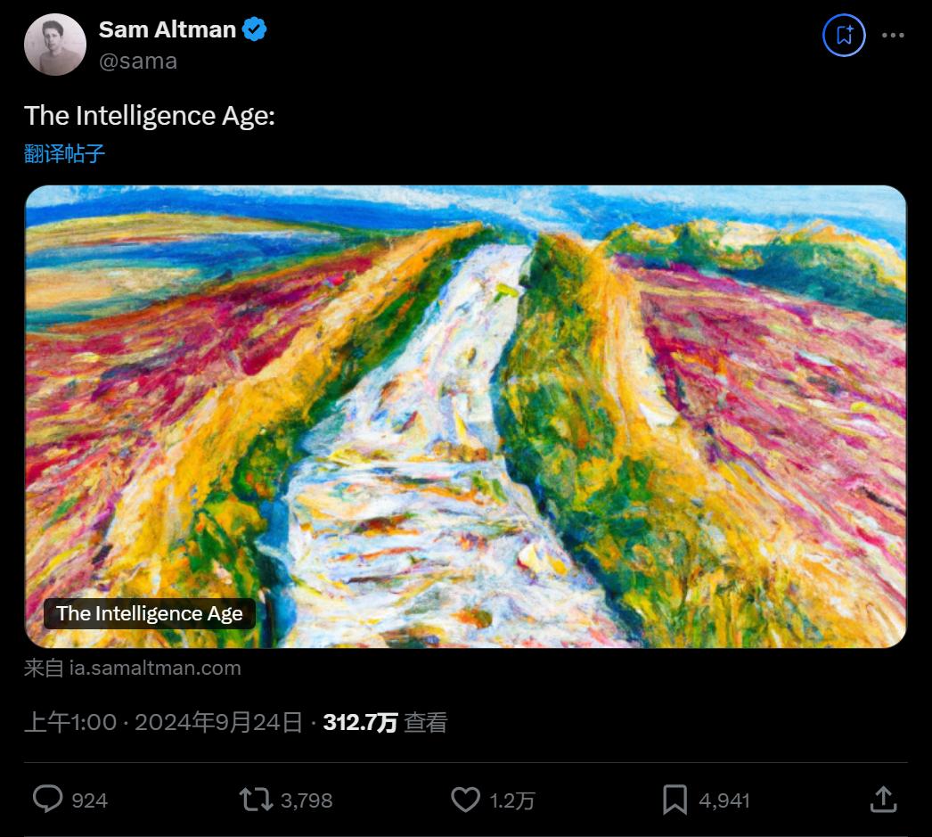 昨天,OpenAI CEO 山姆阿尔特曼在新开的博客主页发了一篇长文《智能时代》。全文大致内容是:随着深度学习的发展,超级人工智能将在几千天后到来,到时候 AI 会改变人们的方方面面,人类也将进入智能时代。
