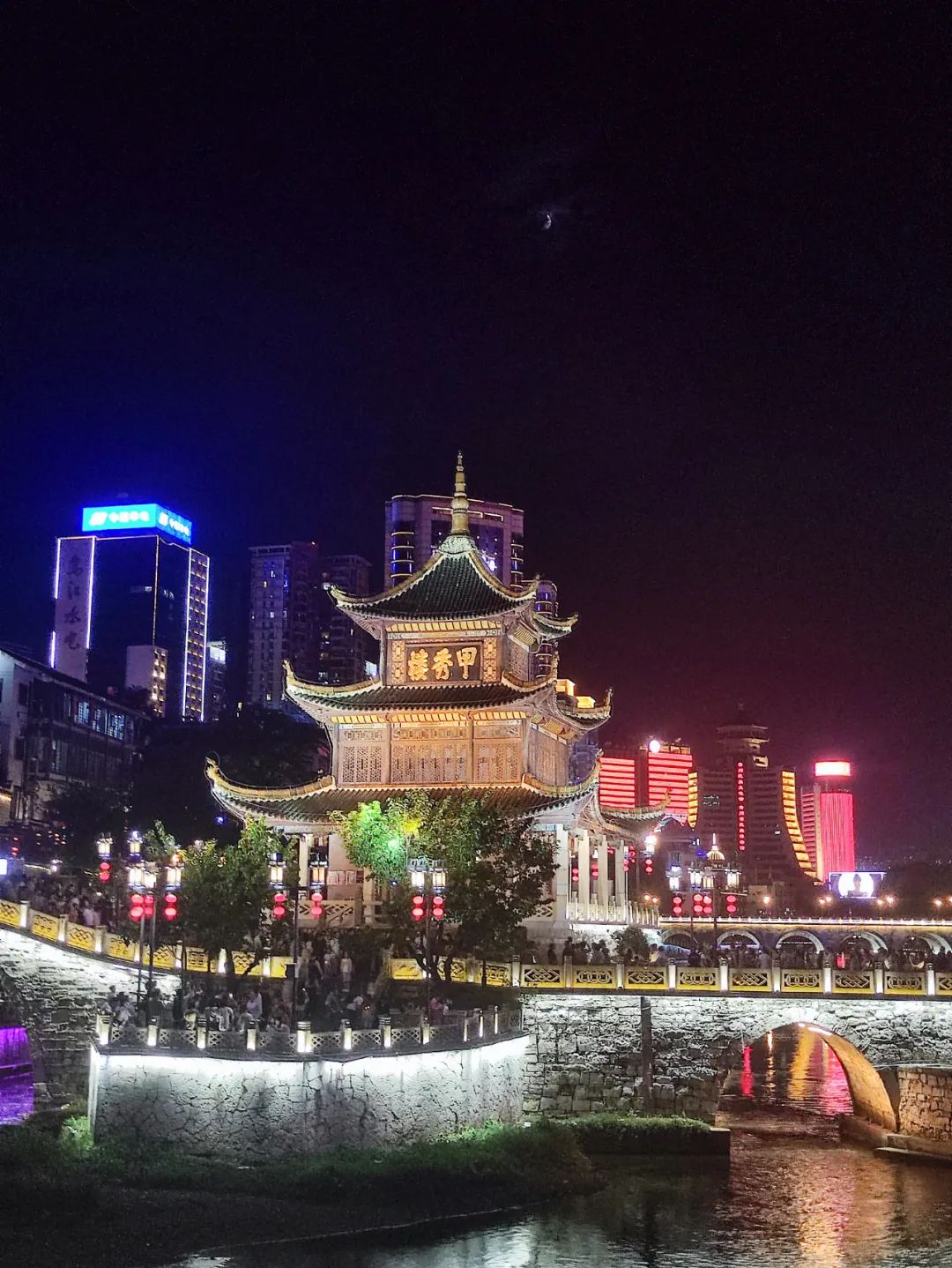 贵阳的房东带鹿子到甲秀楼游览。(图/受访者供图)