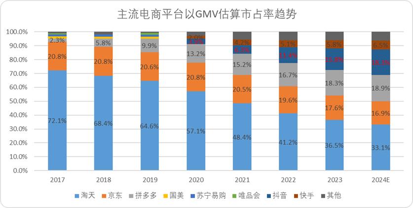 图:主流电商平台以GMV估算市占率,来源:中金财富,锦缎研究院