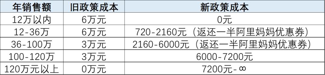 新规看似绝对成本较低,但以50元件单价计算,月销只要达到2000+的店铺所负担的技术服务费成本,就要大于之前的年费成本,而且卖的越多成本越高。