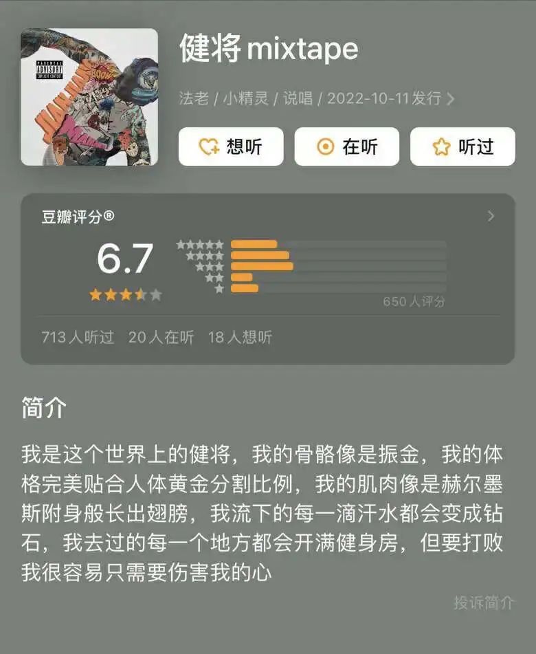 去年夏天,我在综艺节目上看到一个令我非常惊叹的视频,是一个抽象说唱叫做《健将》。有一个rapper叫小精灵,还有一个rapper叫做法老,他们在综艺上加入了rapper 早安,合作了一首《健将PLUS》。我第一次看的时候大受震撼。看完评论区之后深深地理解并被洗脑了。他们就是在一个相对主流严肃的综艺节目里,突然开始发疯狂欢。我认为这样一种精神就称为抽象精神。