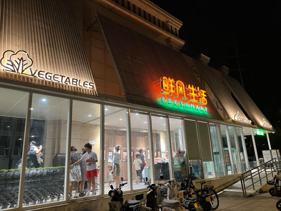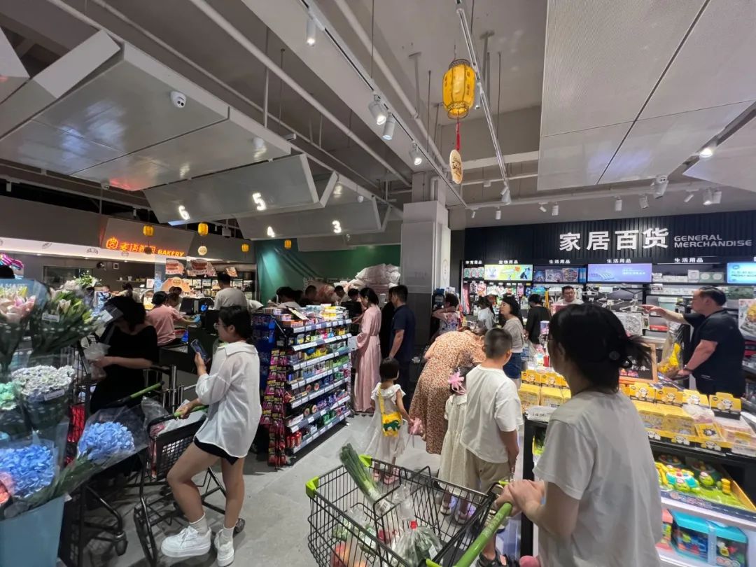 在工作日的晚八点,我们抵达这家位于居民住宅区的门店时,店内人头攒动,热闹的场面不亚于北京节假日的山姆,远远超出我们对于一般社区超市的客流量预期。