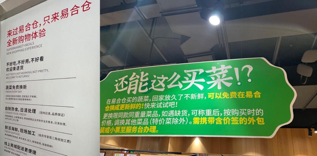 另一个值得一提的点是,易合仓提供的一项创新服务“蔬菜换新”,即在易合仓买的蔬菜,回家放久了不新鲜,可以免费换成更新鲜的。这项创新服务好像也希望从侧面再一次告知消费者:既然买了回家没时间处理放着,还不如在我直接吃新鲜的?