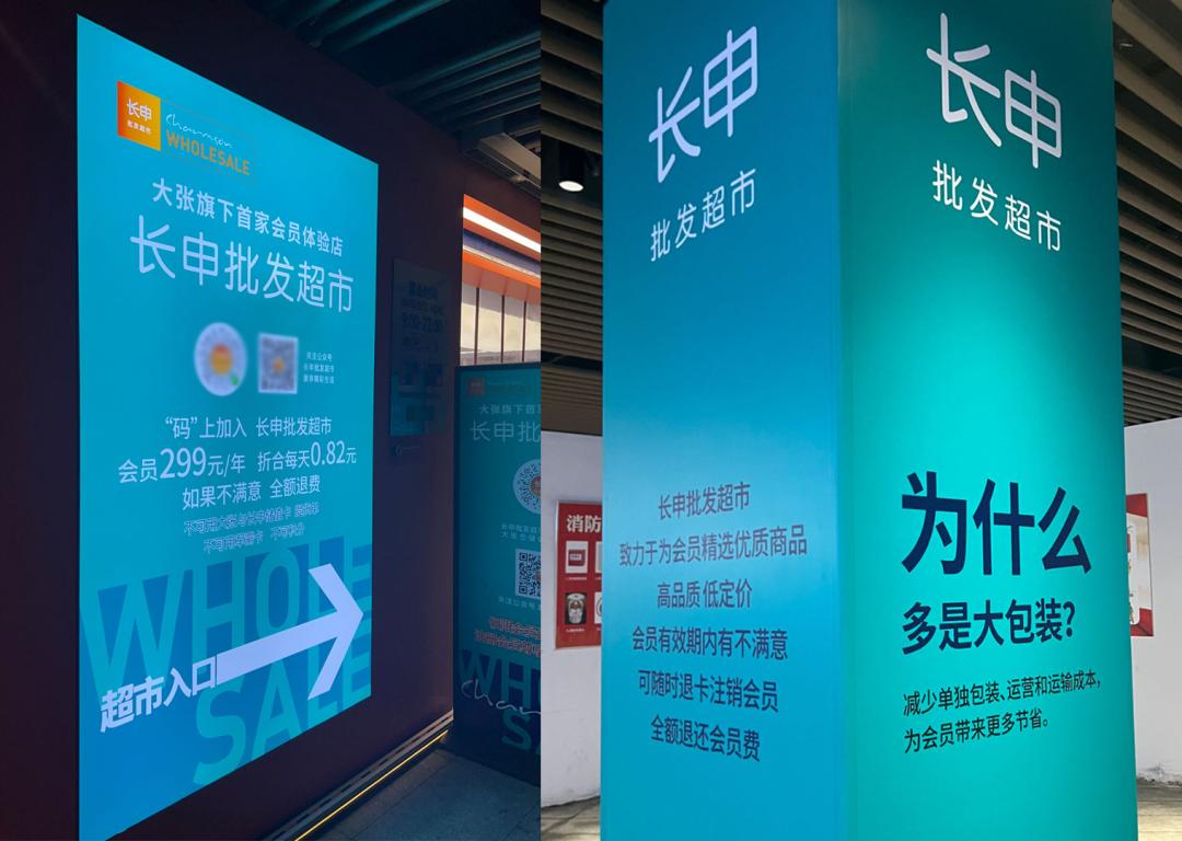 会员制超市的热潮,感召的不只是一线城市的精品连锁,也影响了诸多区域性的零售连锁系统。作为大张集团旗下的首家会员体验店,这家长申批发超市开业于2023年10月,算起来营业还不到一年。