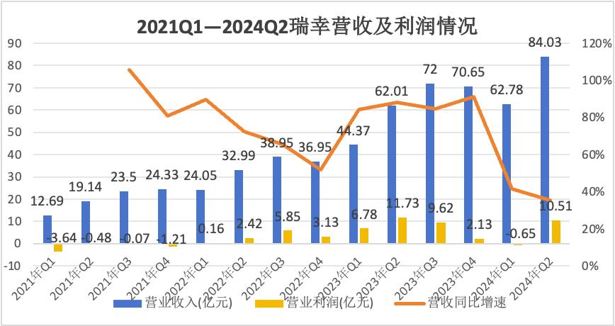 回顾瑞幸近三年经营数据,营收呈现较为稳定的增长。尽管2024年Q2营收增速有所放缓,但依旧高达35.51%,营收也达到了历史新高——84.03亿元。