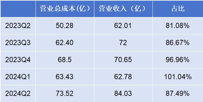 问题在于,成本增长的同时,营收并没有呈现对应速度的增长。