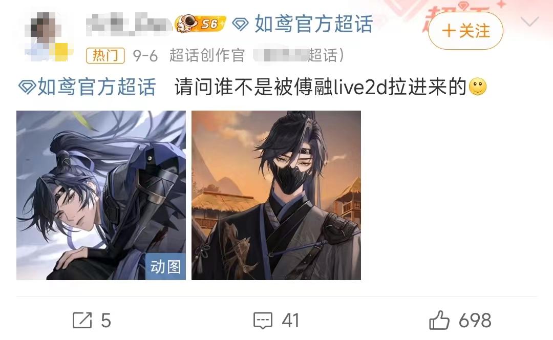 卷美术倒不是什么少见的操作,但《如鸢》的live2D确实卷出了出人意料的水准,甚至在一定程度上刷新了大家对2D上限的理解。他们做的并不是机械、重复的肢体摆动,而是丝滑流畅的微表情、小动作。典型如火出圈、引发热议的傅融(男主之一)翻白眼动画,明明不是3D,却把人演活了。