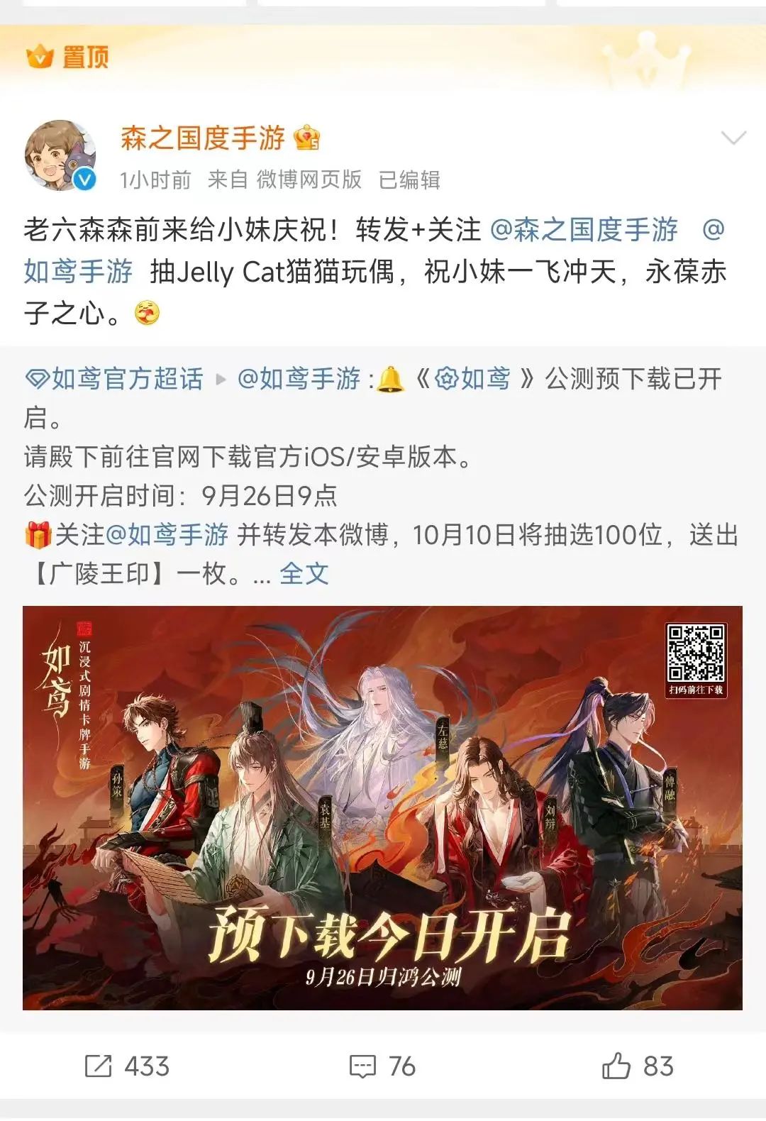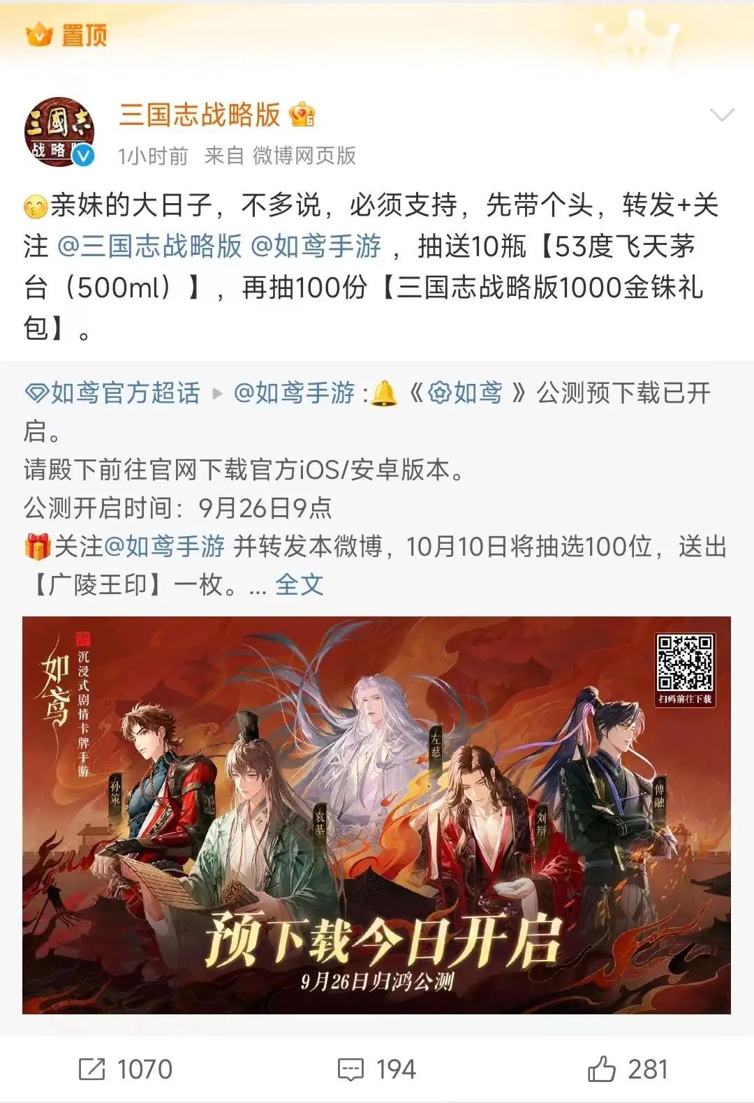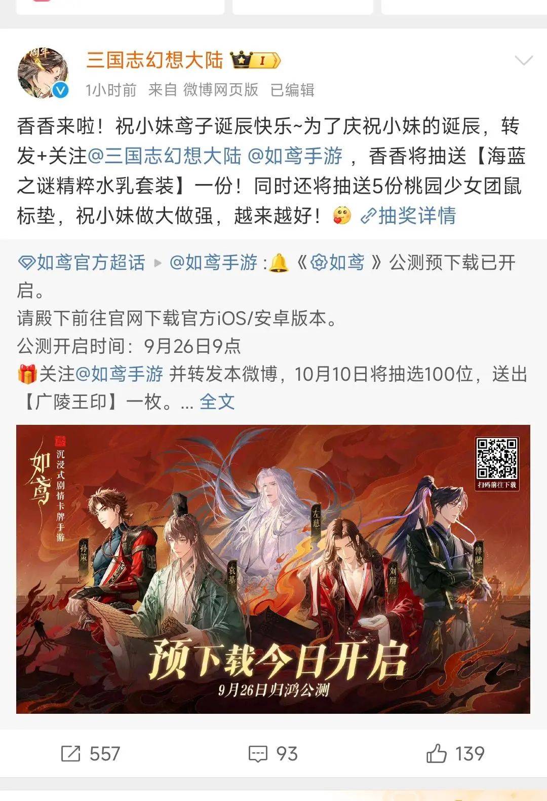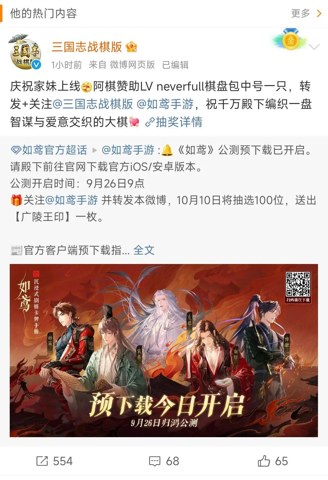 昨天开启预下载后,灵犀其他哥哥姐姐辈的游戏,都发文给《如鸢》这个小妹庆祝……也难怪有网友评价,说《如鸢》这次排面是真的大。