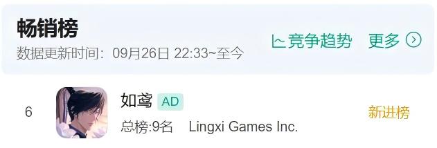 今天,灵犀互娱(下称灵犀)的沉浸式剧情卡牌手游《如鸢》公测,首日便冲到iOS国区游戏畅销榜Top 6。昨天游戏开启预下载后,也早已迅速登顶iOS免费总榜榜首。