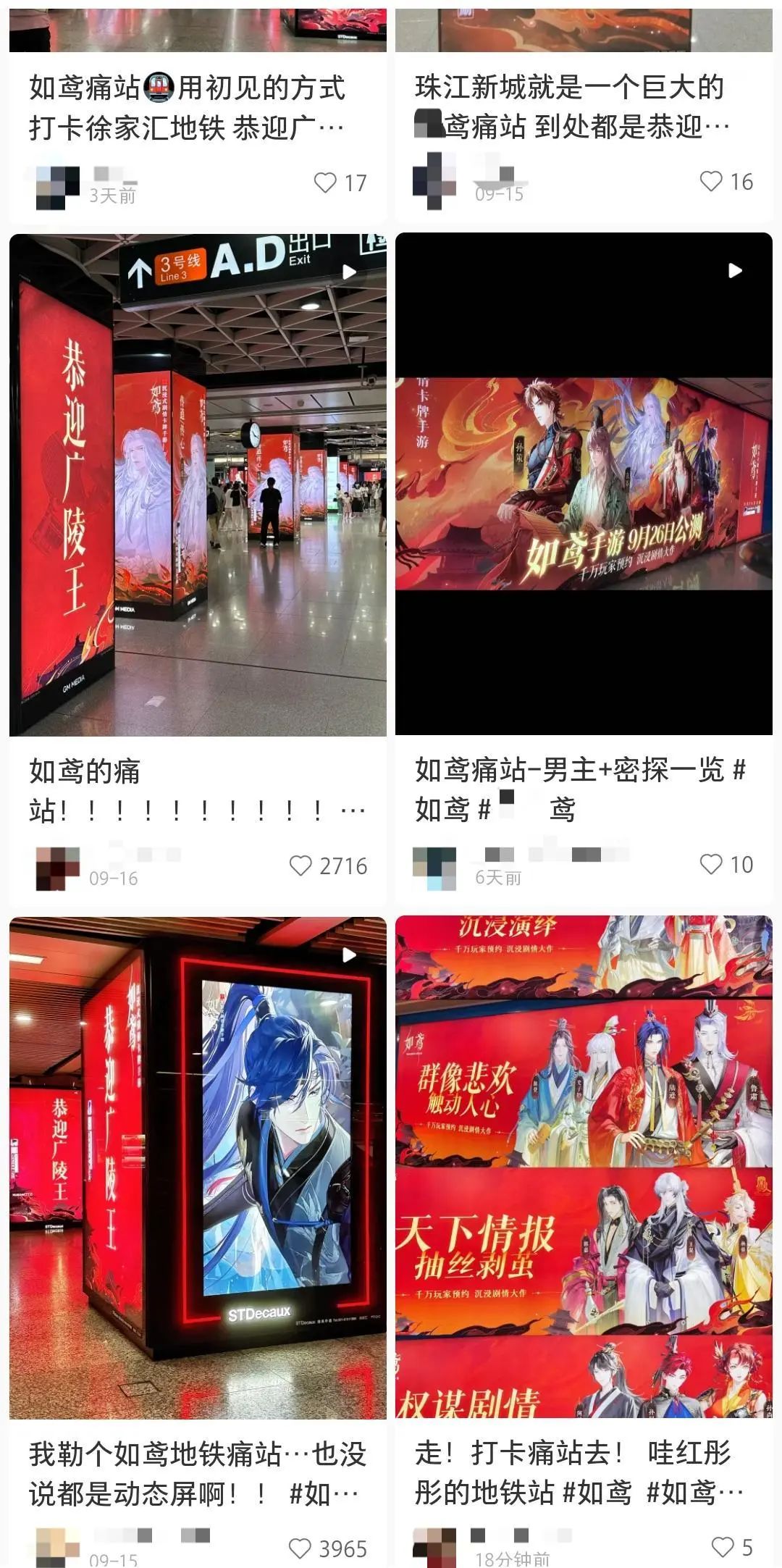 临近上线,广州珠江新城、上海徐家汇等地铁站,已成《如鸢》的“痛站”,广州阿里中心也摇身变为“痛楼”,还有8城大屏、扬州文旅联动,游戏甚至登上了东方明珠、外滩群楼、广州塔,引得不少玩家跑去线下打卡;