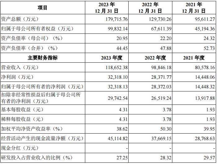 公司主要财务指标,来源招股书