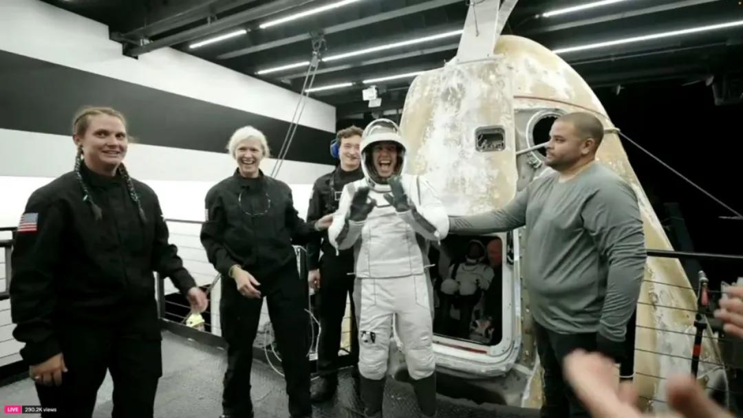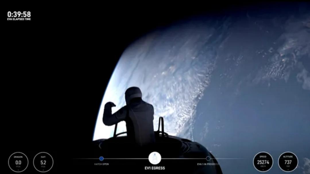 北极星黎明号乘员出舱,状态非常好;图片来源:SpaceX