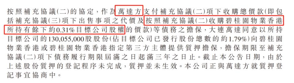 去年12月,碧桂园先行发布公告,间接全资附属公司金逸环球计划向万达方(注包括珠海万达、大连万达商管、珠海万赢)出售所持有的珠海万达全部股份,占珠海万达全部股本的1.79%。