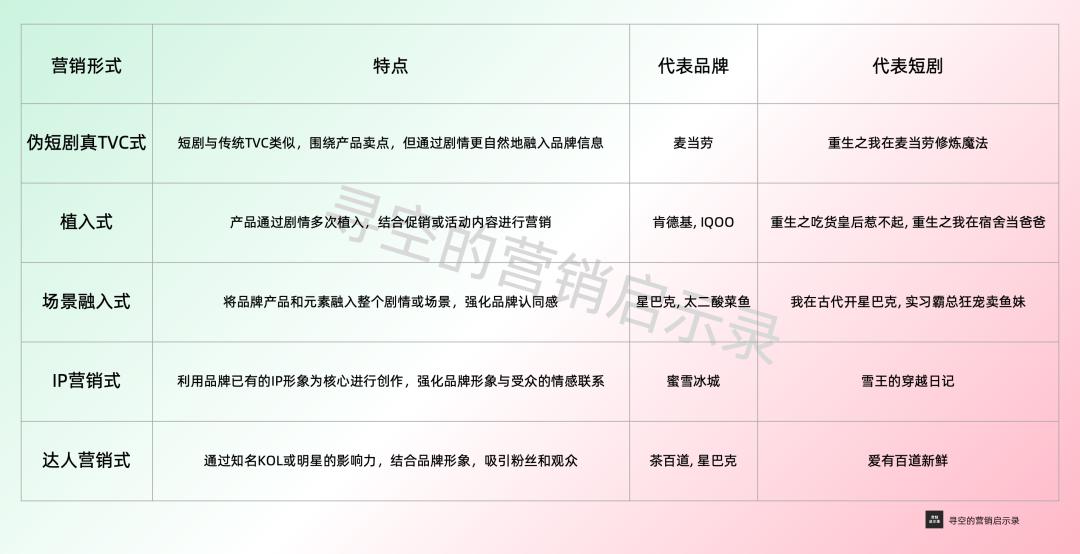 我们可以将当前品牌拍短剧的营销方式归纳为以下几类。