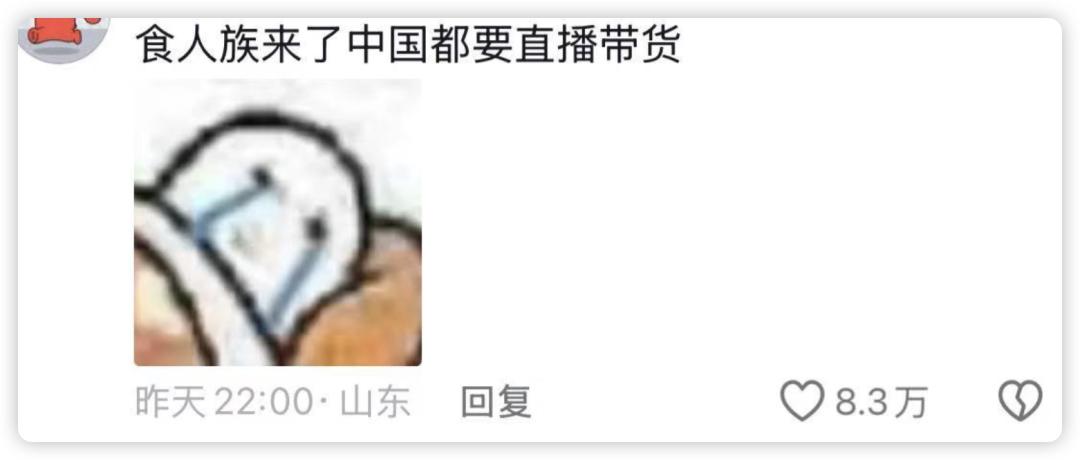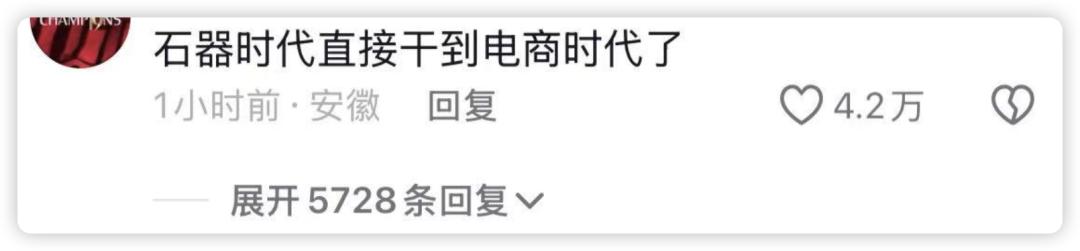 有网友调侃,这几个原始人前两天还在原始部落里打猎,转眼就在直播间卖货,直接“从石器时代干到了电商时代”;还有网友发现,9月22日这场直播持续了8个小时,标准工作时长,感慨“不管是什么族,来了这里都是打工族”。