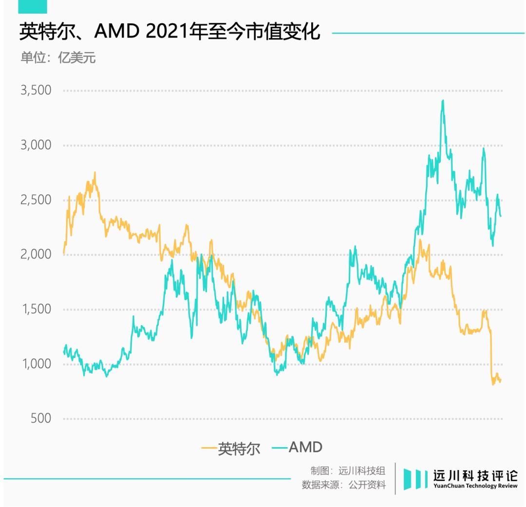 英特尔挤牙膏的这几年,恰好赶上三星和台积电大干快上,一口气把制程推进到了5nm。依靠台积电的生产能力,AMD开始绝地反击,公司市值在2022年历史性的超过了英特尔。