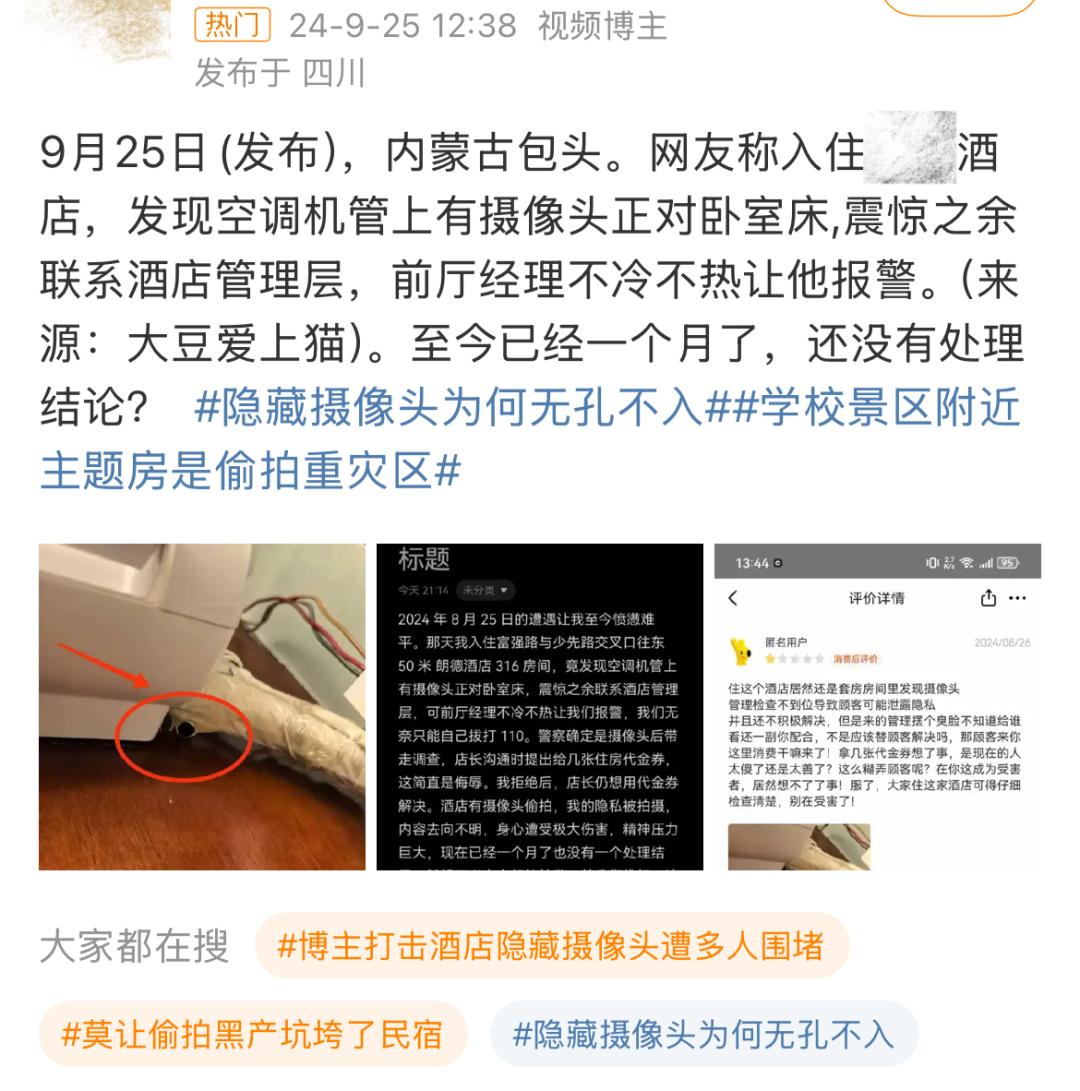 开头那位打击酒店隐藏摄像头的博主@影子不会说谎 的新闻上了热搜,非但没有震慑到他们,他们最多是像开玩笑一般互相提醒一下。