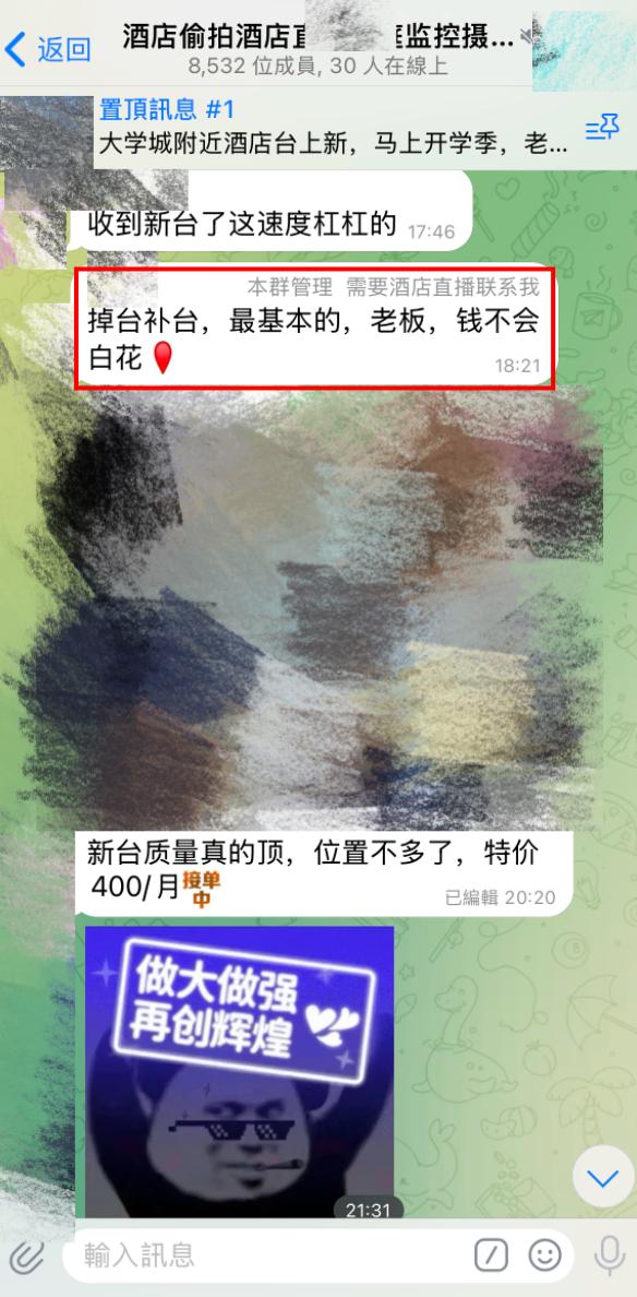 而这个主要以兜售录播酒店偷拍视频的频道,仅仅是众多此类频道中人数最多的而已。甚至就像他们自己宣传的那样,收费标准已经算低的。