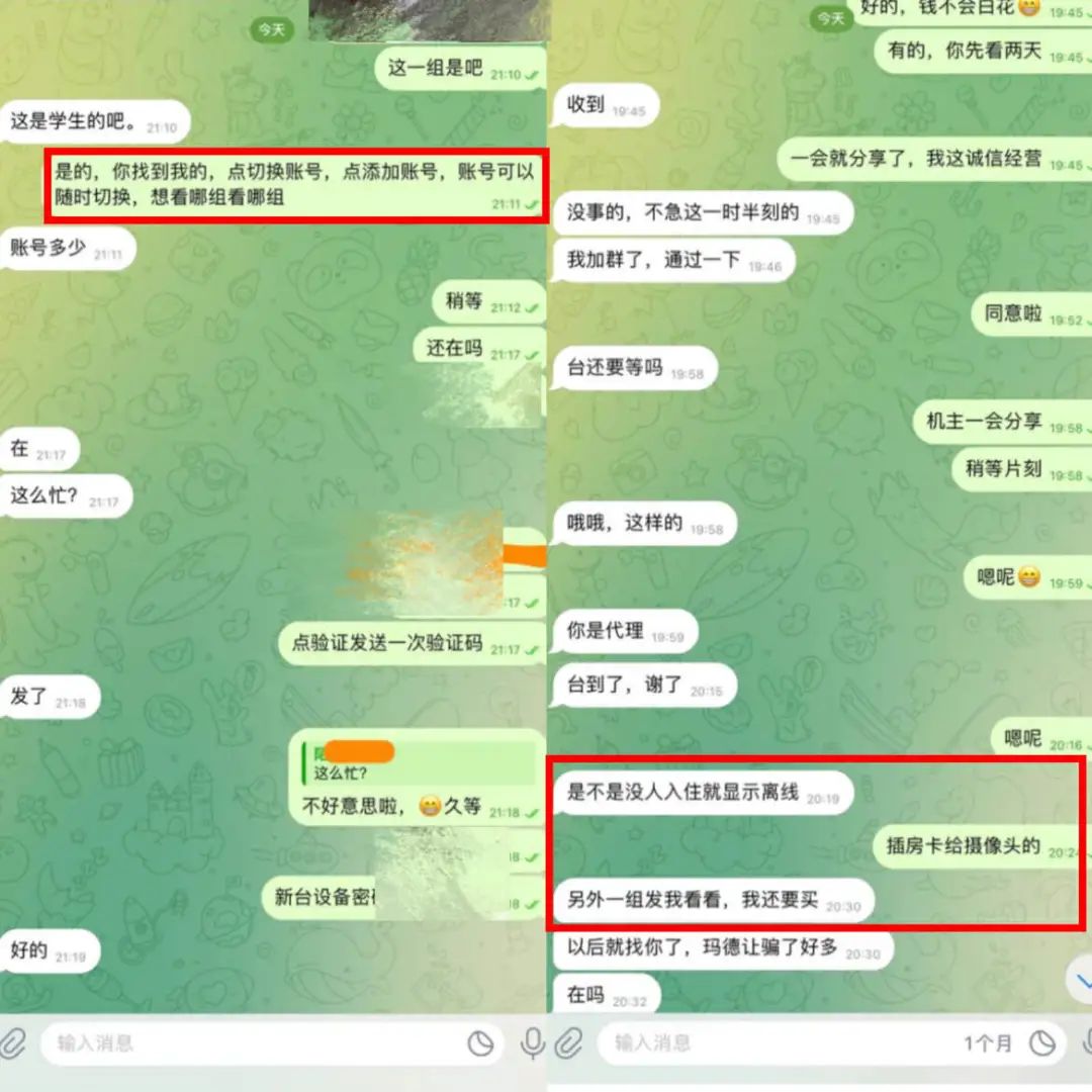 与此对应的还有“补台”——在包月内购买的盗摄直播摄像头无法登录后,组织频道的不法分子会补发一个位置类似的摄像头地址。甚至是在原址重新安装并开通一个。
