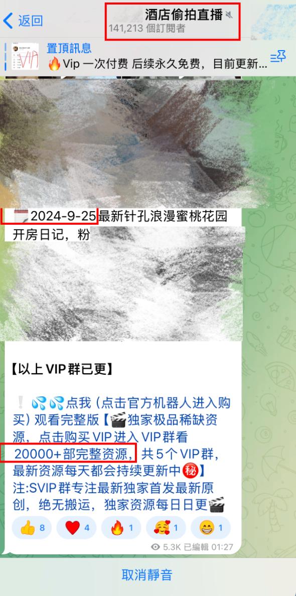 在此频道最新的群广告中,他们宣称目前VIP群的酒店偷拍视频数量,已经由三个月前的近10000部,变成了20000+部。