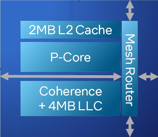 而至强6能效核的微架构Crestmont,也同样出现在了酷睿Ultra的能效核当中。Crestmont是2或4个内核为一组共享L2缓存。在至强6能效核当中,每2或4个内核与4MB的L2缓存(在酷睿Ultra中则为2MB)构成一个模块,这几个内核共享频率和电压域。这个模块对应的网格还拥有可整个处理器全部内核共享的3MB的末级缓存。换句话说,虽然至强6能效核的核数更多,但实际上网格规模比至强6性能核小。