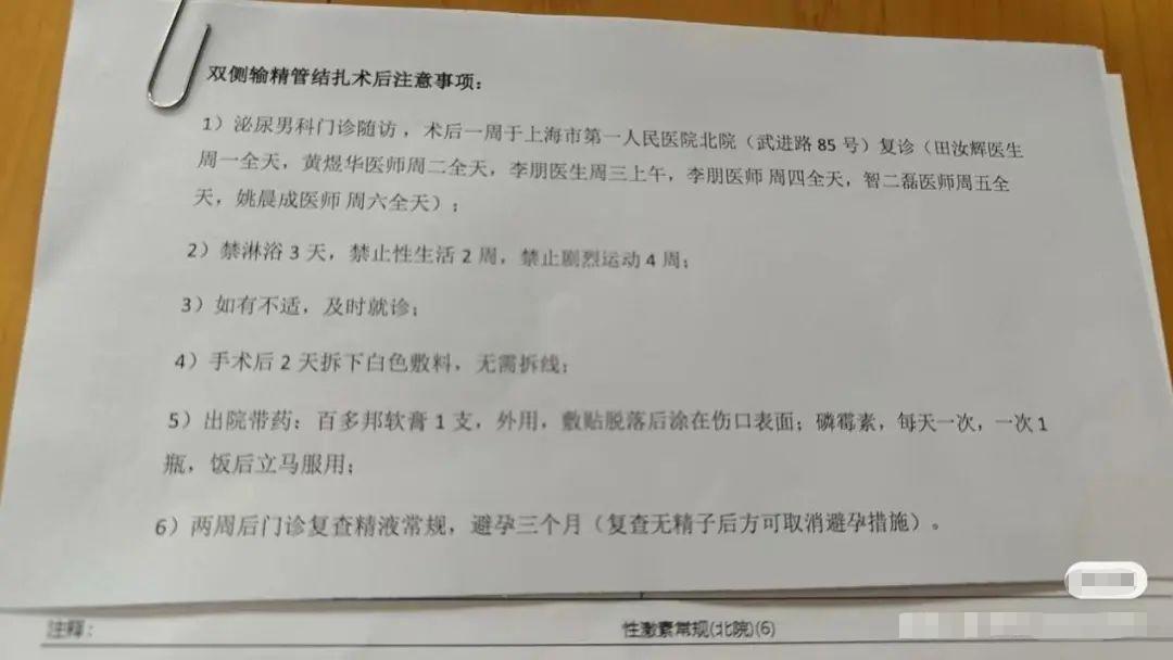 在这之后的一两个月,等身体把输精管里剩余的精子排空,再去医院做一个精子检查,他和妻子就彻底安全了。