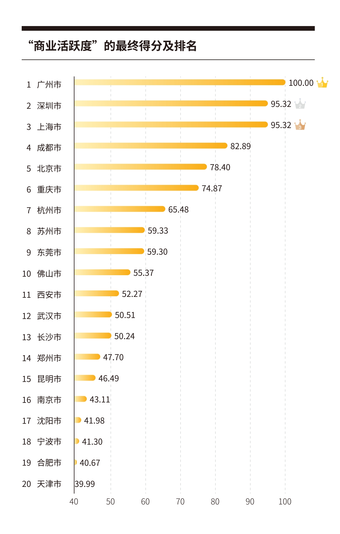 商业活跃度城市排名,图据长沙新消费研究院