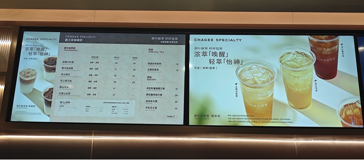 36 氪了解到,试点门店已经陆续上线包含“茶中式”及“茶拿铁”两大系列7款茶饮在内的新菜单,产品包括武夷大红袍、黑巧老班章、半山奇红、天心黑乌龙、高山乌龙、大雪山生茶等不同产地原叶茶,可制作茶中式和茶拿铁(部分),规格也进一步缩小,分别为 420ml 和 320ml。