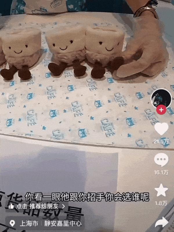 和以往让娃娃们乖乖躺在橱窗里任人挑选不同,这次Jellycat让绒娃娃“主动出击”,通增加“出餐仪式”来吸引年轻人的注意。