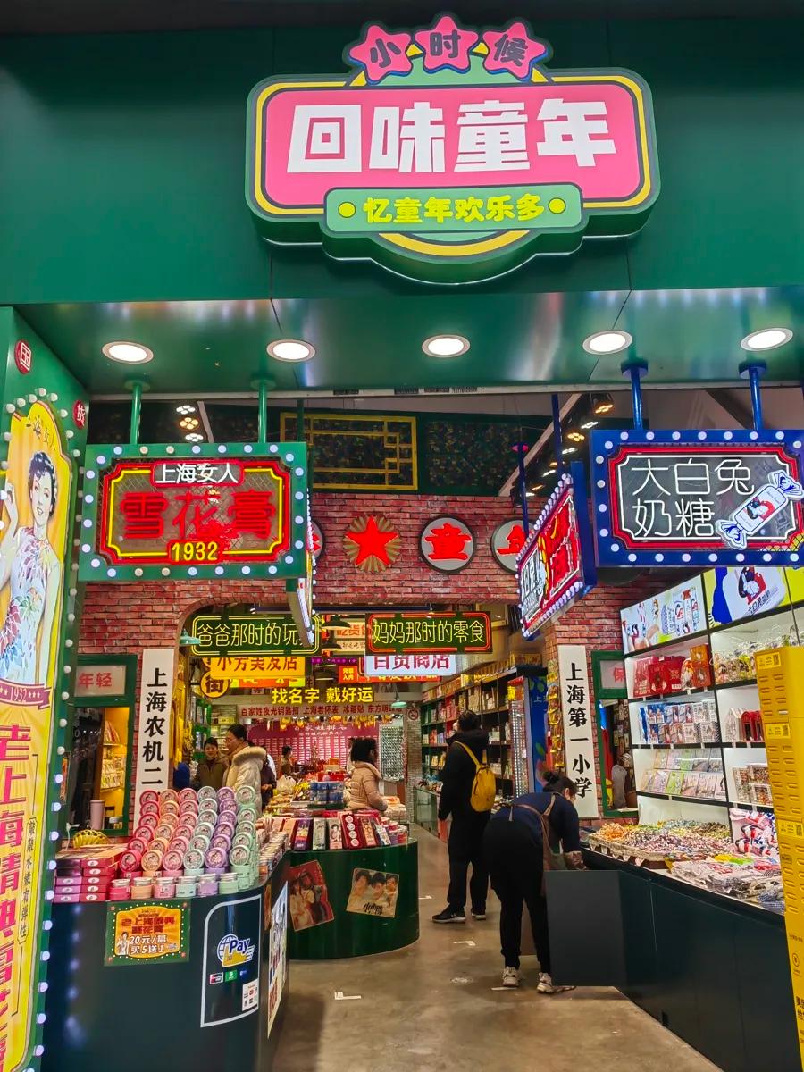 ▲南京东路步行街的“回味童年”零食铺一景,彭薇 摄,解放日报