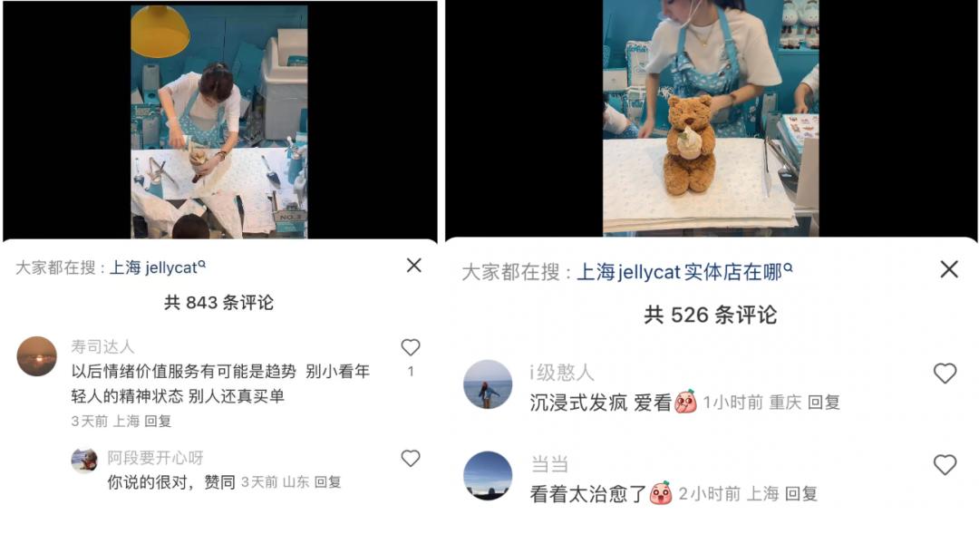 在小红书上,一些体验过Jellycat线下沉浸式玩法的用户评论:因为它能提供情绪价值,这种“沉浸式发疯”看起来非常治愈。