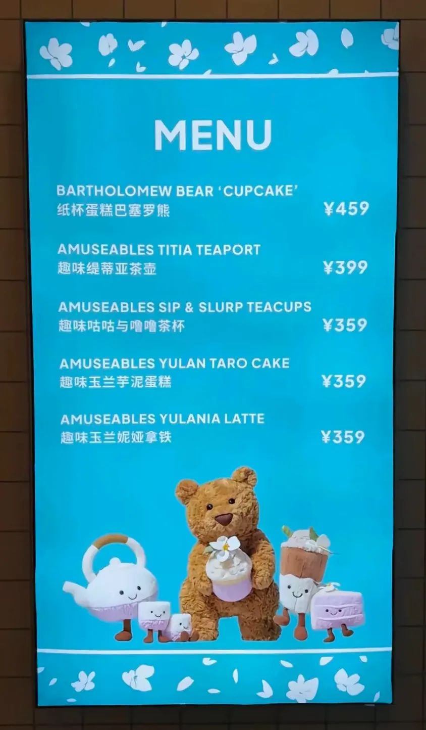 ▲Jellycat线下体验店价格MENU,图源网络