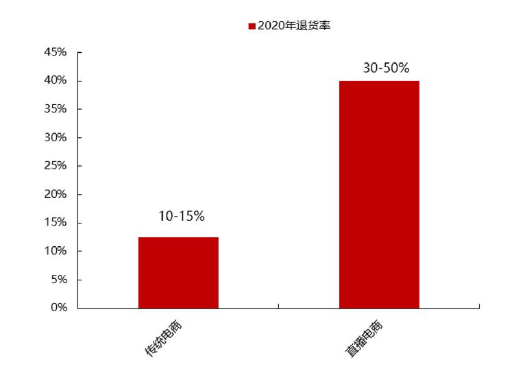 据36氪研究院早先发布的《2020年中国直播电商行业研究报告》,直播电商平均退货率为30%到50%,高于传统电商退货率的10%到15%,是品牌官方电商销售渠道退货率的2到3倍。