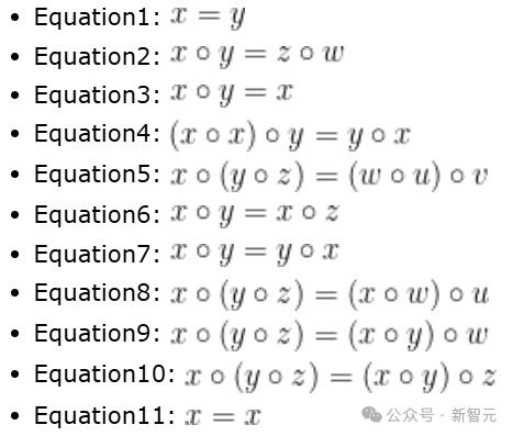 例如,等式1可以推导出这个列表中的所有其他公理,而这些公理又可以推导出等式11。