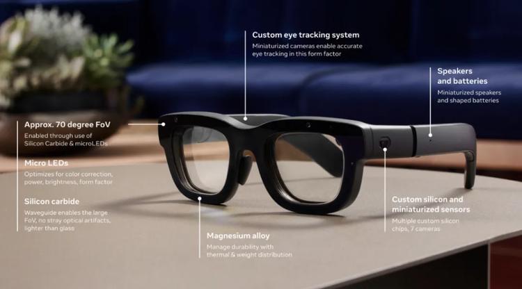 在五年前,Meta技术团队评估Orion的设想时,还认为成功率只有10%。他们把核心难点归咎于显示器和视场角的扩张。Meta最终为Orion构建了全新的显示架构,在眼镜框架内嵌了微型uLED投影仪,将光线精确投射到镜片上的波导结构。
